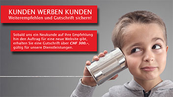 Mundpropaganda ist bekanntlich die beste Werbung. Dass wir dies zu schätzen wissen, zeigen wir mit unserer Aktion «KUNDEN WERBEN KUNDEN».